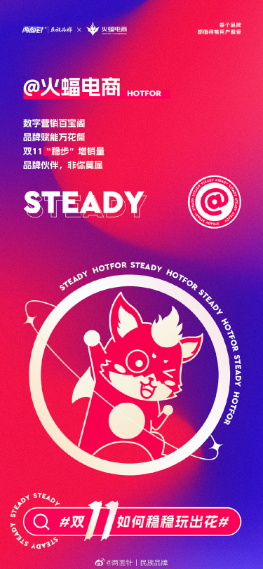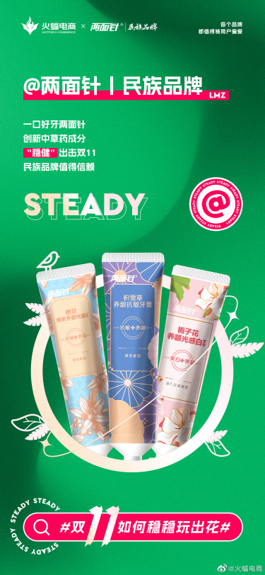 而火蝠B(yǎng)OSS鐘雨清,不僅會(huì)在11月10日空降兩面針官方淘寶直播間,而且11月11日還會(huì)在火蝠直播間引爆雙十一大促之夜。除了萬(wàn)千豪禮相送,鐘雨清還將現(xiàn)場(chǎng)解讀火蝠電商“數(shù)智驅(qū)動(dòng)百分服務(wù),助力老字號(hào)煥新出擊”的營(yíng)銷打法和本屆雙十一的“穩(wěn)戰(zhàn)”內(nèi)核。面對(duì)日顯冷清的雙十一,品牌商家要如何講出新故事,消費(fèi)者又要如何優(yōu)中選優(yōu)呢?敬請(qǐng)關(guān)注火蝠穩(wěn)戰(zhàn)雙十一營(yíng)銷活動(dòng),穩(wěn)穩(wěn)出擊,共贏雙十一。